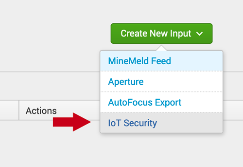 Within the Add-on, click the Input tab at the top left. Then click Create New Input and select IoT Security.